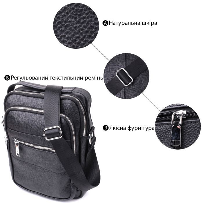• Особливості потайна кишеня на блискавці , текстильний плечовий регульований ремінець , шкіряна ручка для перенесення в руці