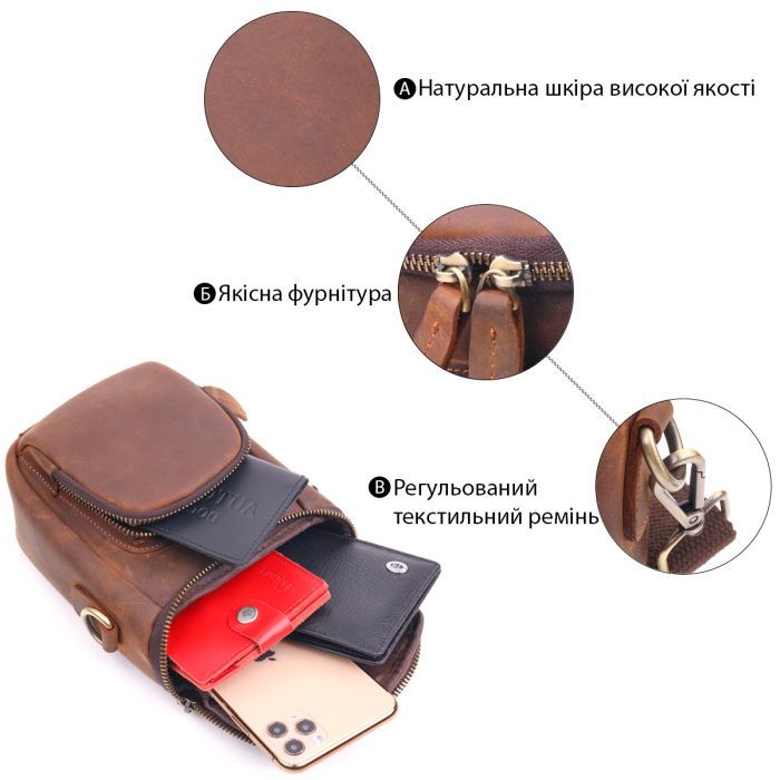 Сумка Vintage Чоловіча з натуральної вінтажної шкіри Коричнева (21295)