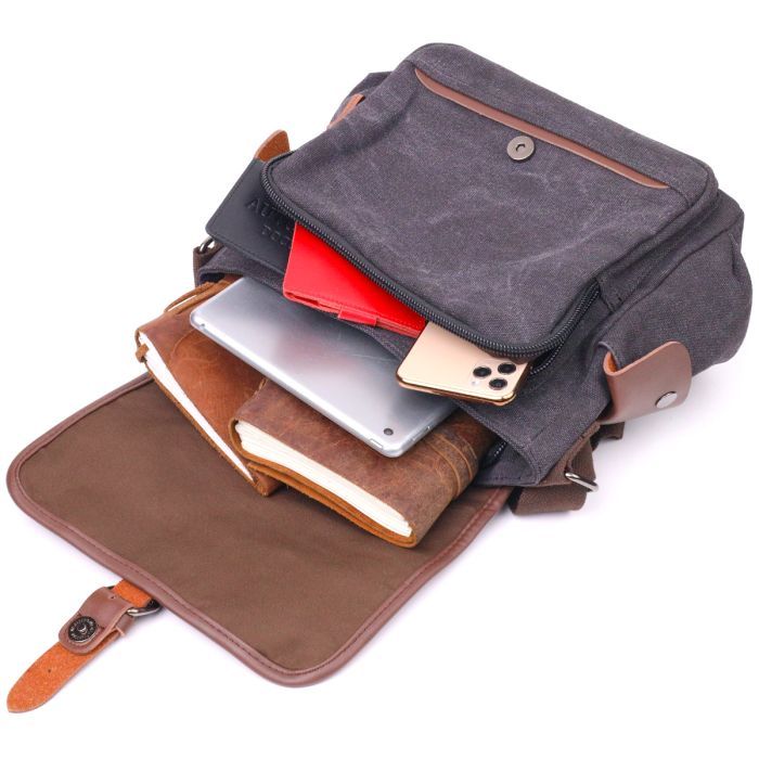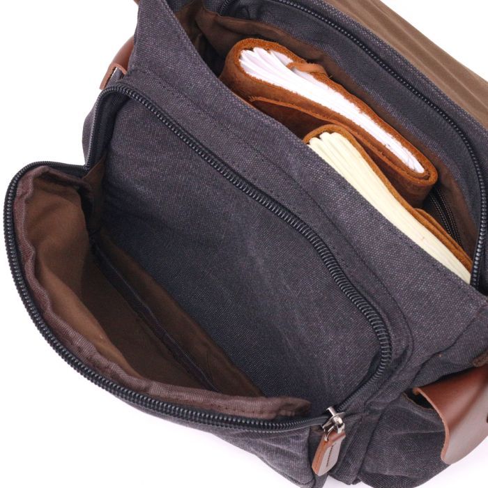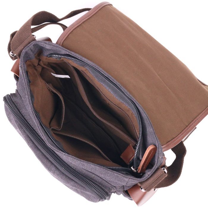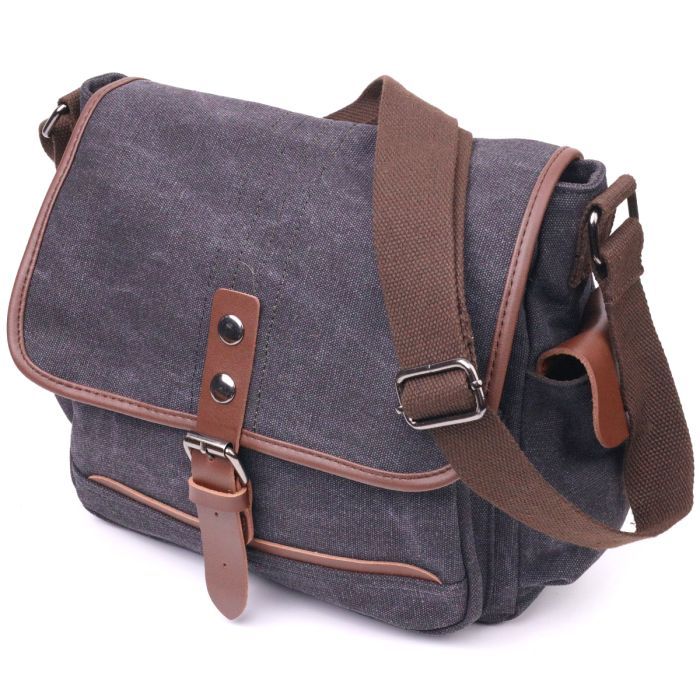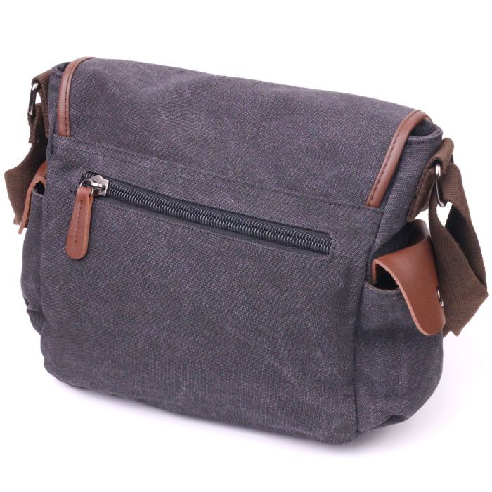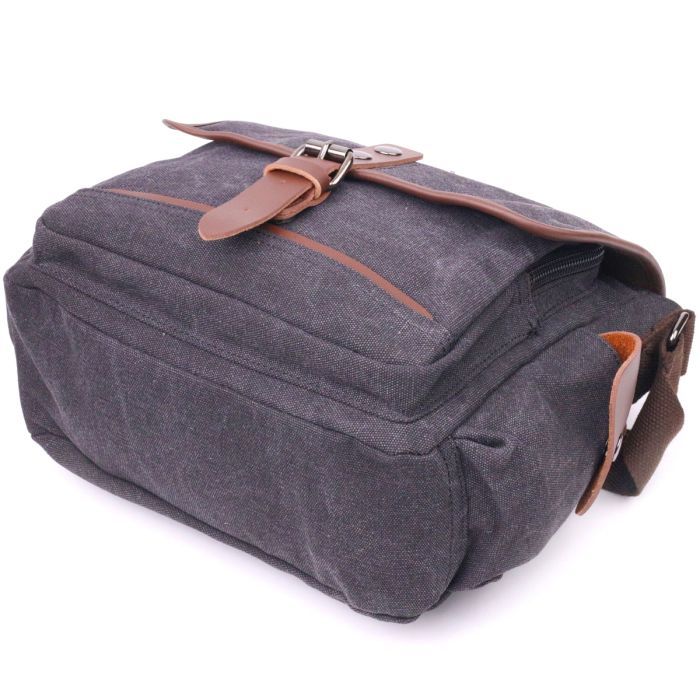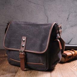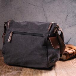 Сумка Vintage Горизонтальна чоловіча з клапаном текстильна Чорна (21247)