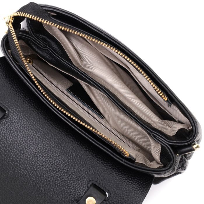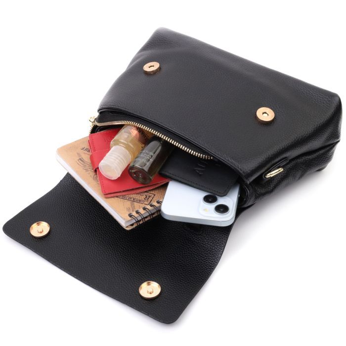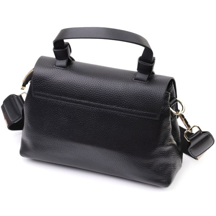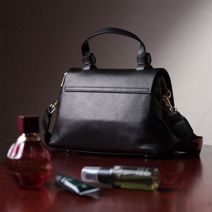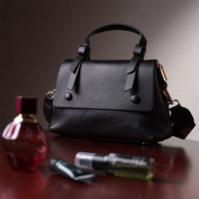 Сумка Vintage Жіноча з короткою ручкою з натуральної шкіри Чорна (22670)