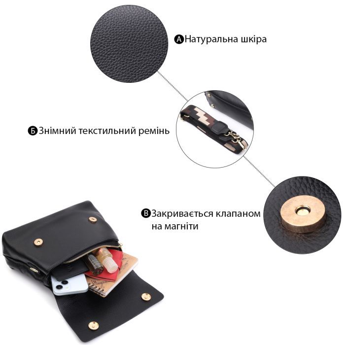 • Модель Жіноча з короткою ручкою з натуральної шкіри Чорна