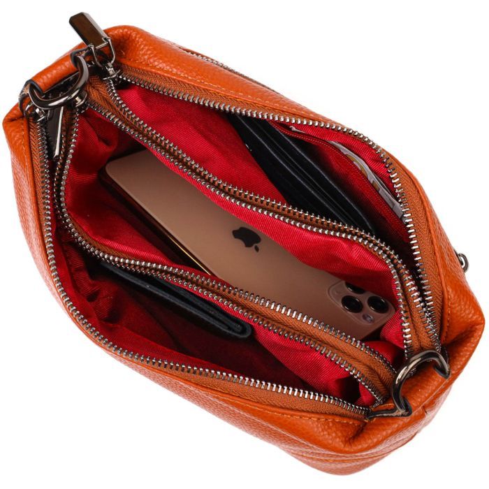 Сумка Vintage На три відділення з натуральної шкіри Руда (22138)