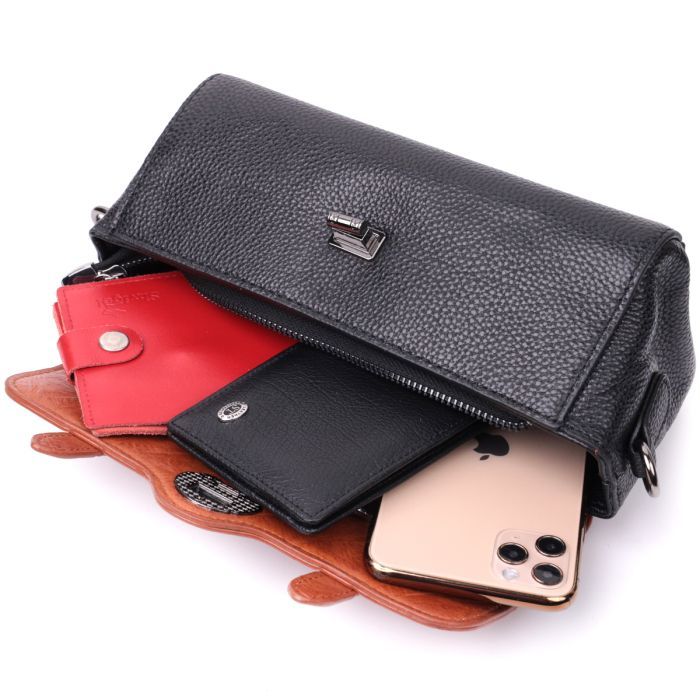 Сумка Vintage Жіноча у вінтажному стилі з натуральної шкіри Чорна (22349)