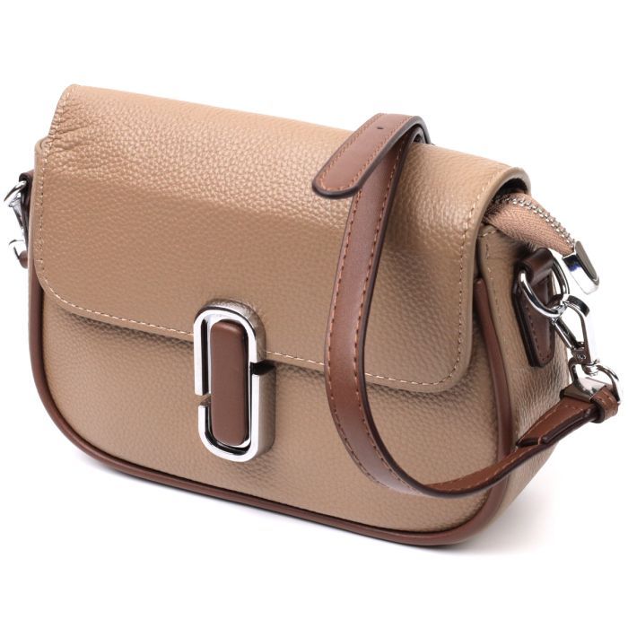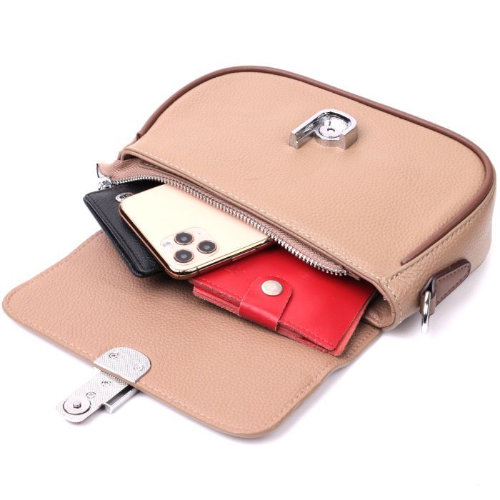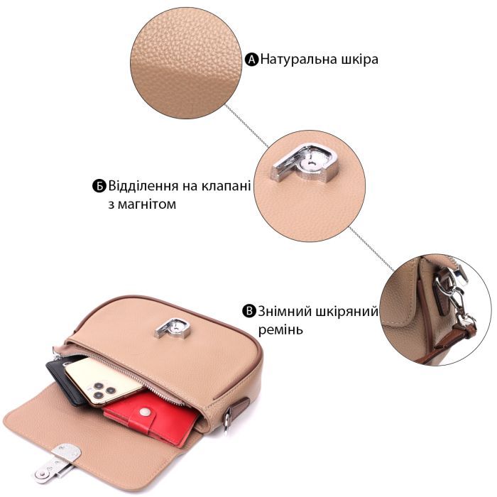 Сумка Vintage Жіноча напівкругла з магнітом-засувкою з натуральної шкіри Бежева (22440)