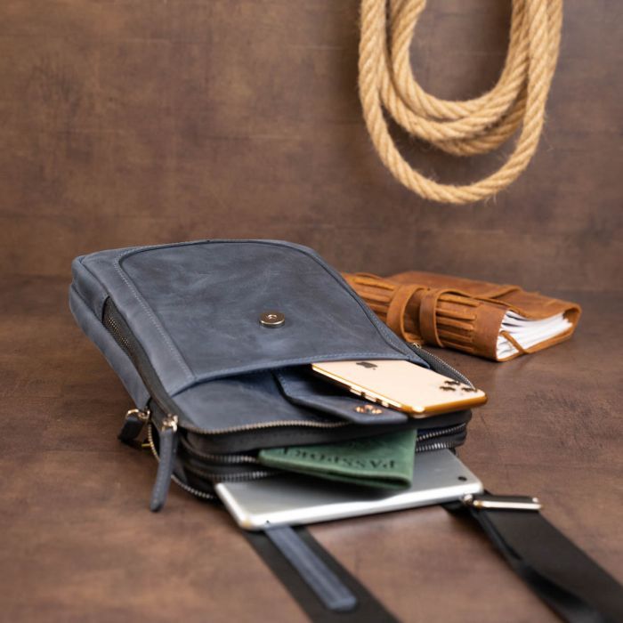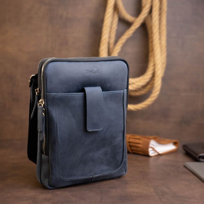 МодельНа два відділення вінтажна шкіряна Синя