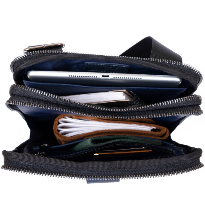 Особливостінакладна кишеня на блискавці на лицьовій стороні , на тильній стороні кишеня на блискавці , текстильний регульований незнімний ремінець на праве або ліве плече