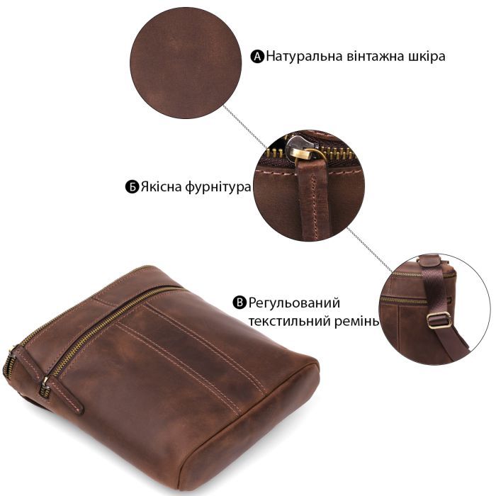 Особливостірегульований плечовий ремінець , на тильній стороні кишеня на блискавці , кишеня на блискавці, на лицьовій стороні , підкладка з надміцного текстильного матеріалу