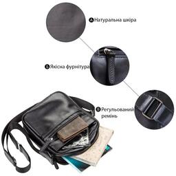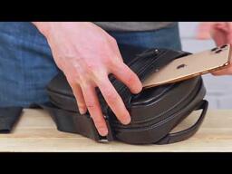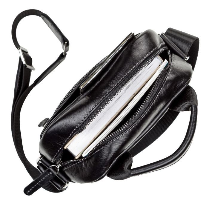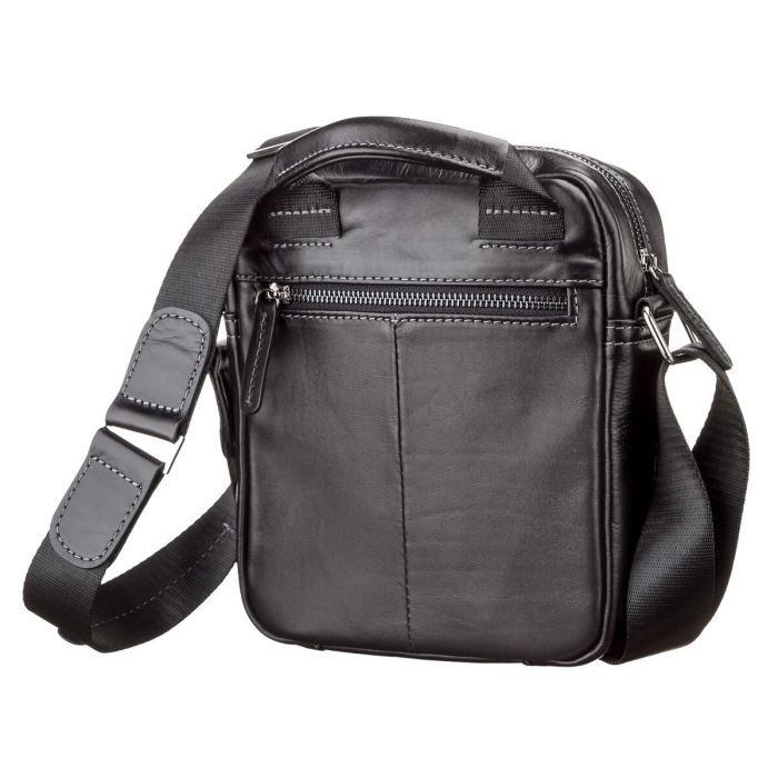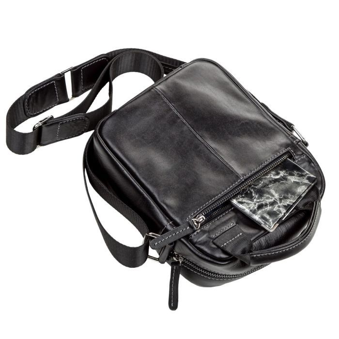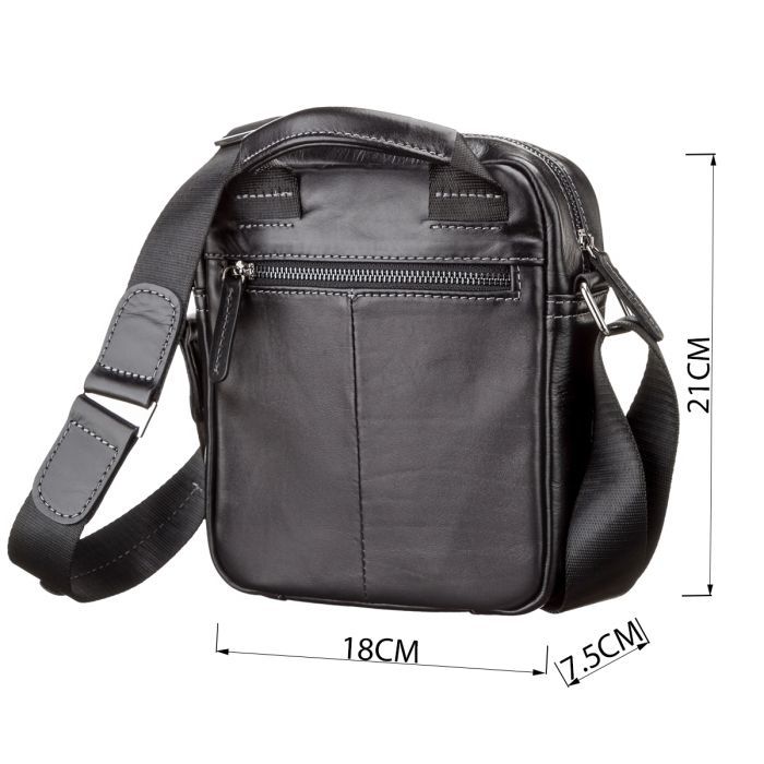 Особливостінакладна кишеня на блискавці на лицьовій стороні , на тильній стороні кишеня на блискавці , шкіряна ручка для перенесення в руці , текстильний регульований незнімний ремінець на праве або ліве плече , накладна кишеня на магніті на лицьовій стороні