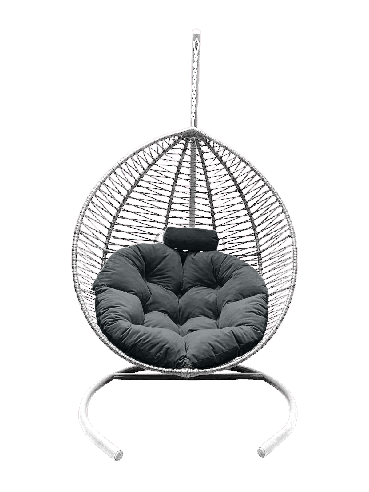 Подвесное кресло кокон Капля Зигзаг белый с серой подушкой