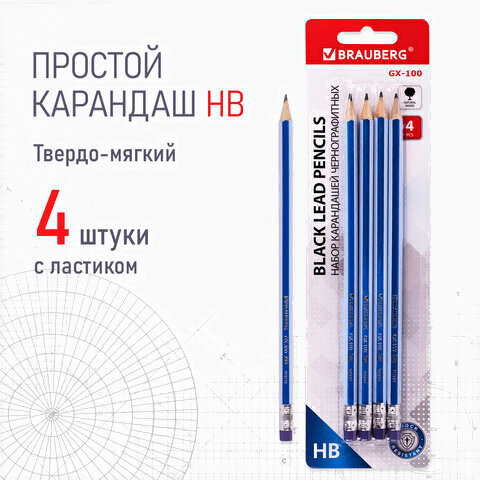 Набор простых карандашей Brauberg GX-100 / 181721 (4шт)