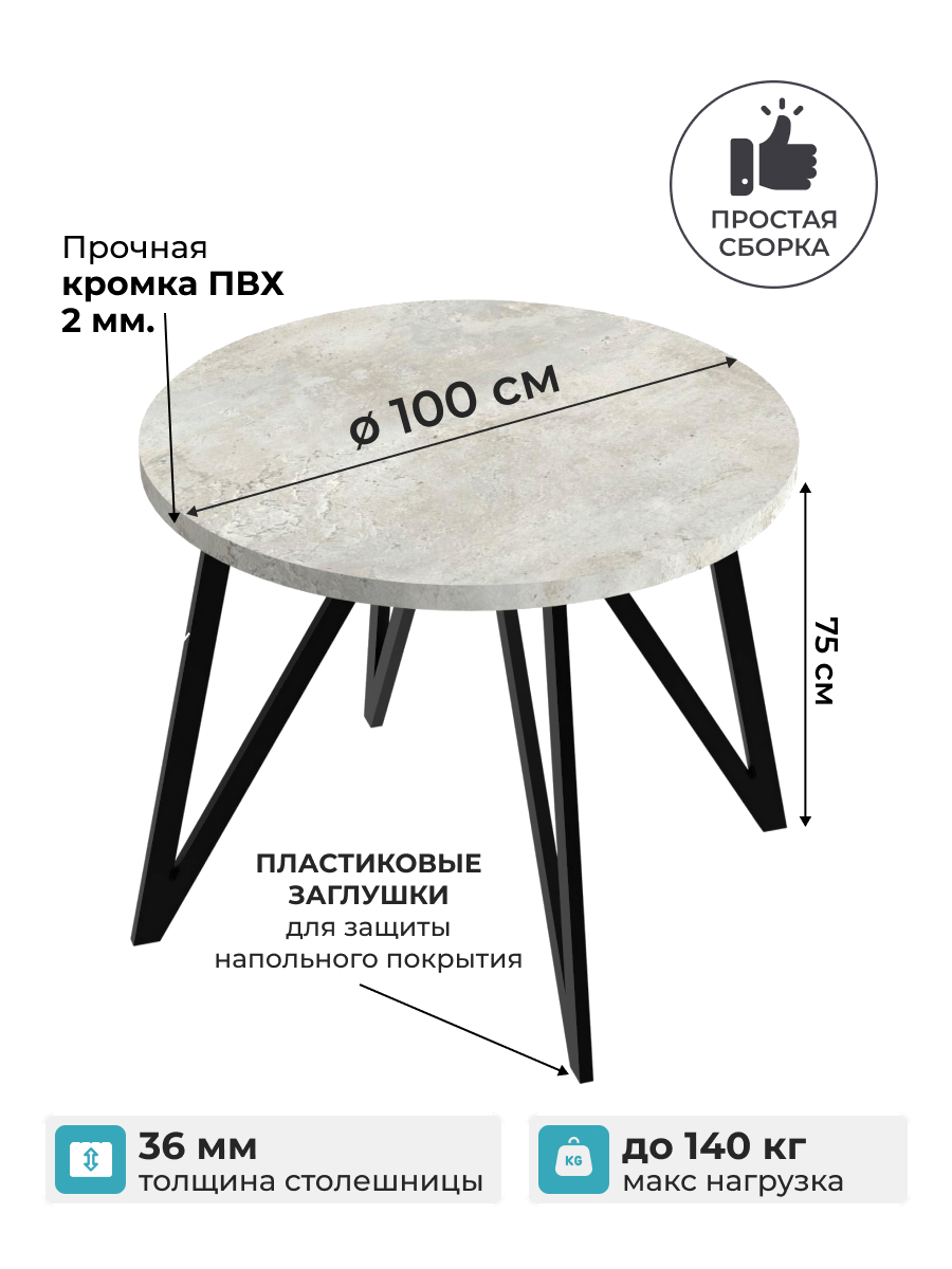 Обеденный стол Макс Стайл СтО-1000 (бетон)