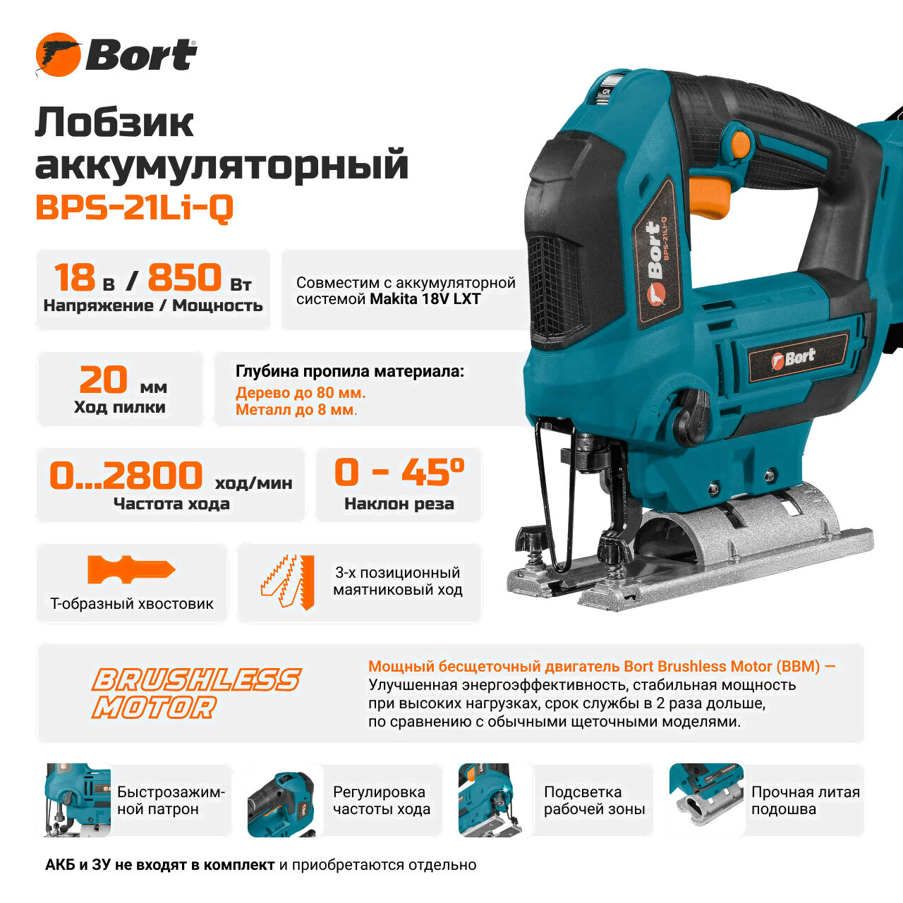Электролобзик Bort BPS-21Li-Q (93413625)