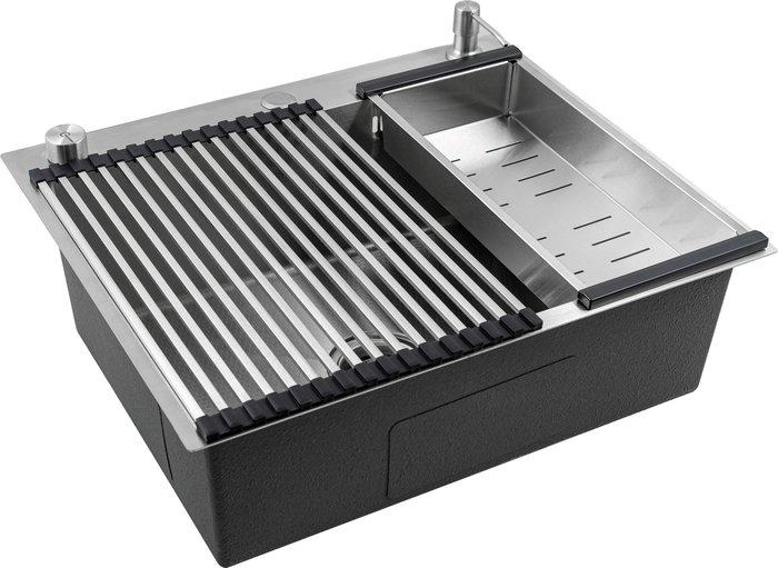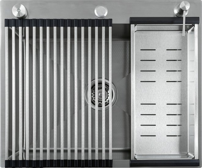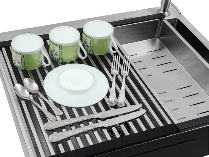 • Комплектация Полуавтоматический сифон Pop up, коландер(Сатин), гофра, дозатор для моющего средства(Сатин), мойка(Сатин), Roll — мат.