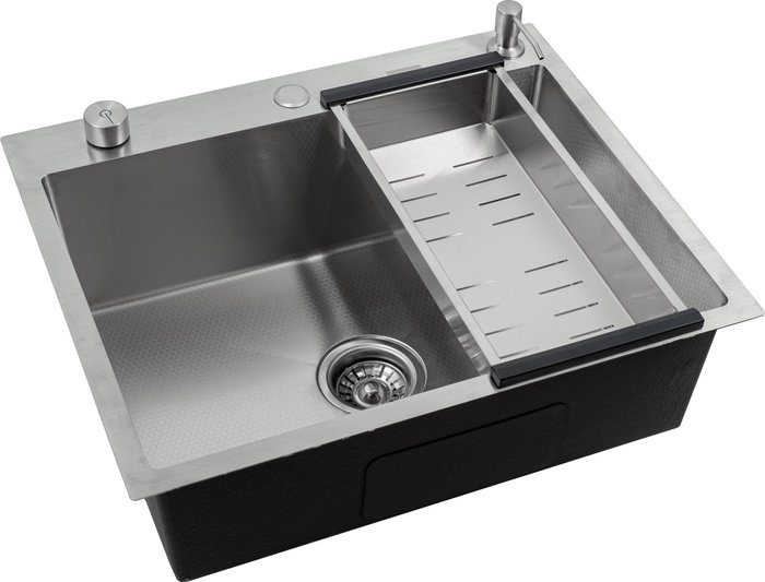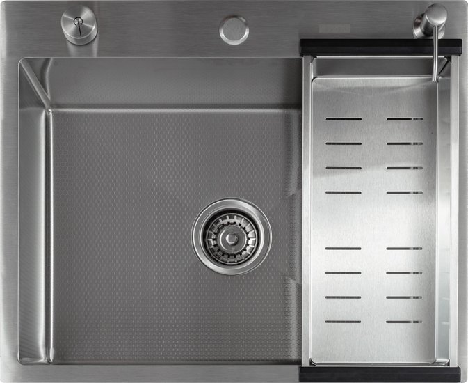 • Комплектация Полуавтоматический сифон Pop up, коландер(нерж.), гофра, дозатор для моющего средства(нерж.), мойка, разделочная доска
