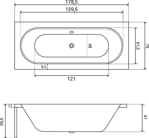 • Глубина ванны 41 см