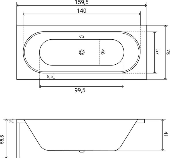 • Глубина ванны 41 см