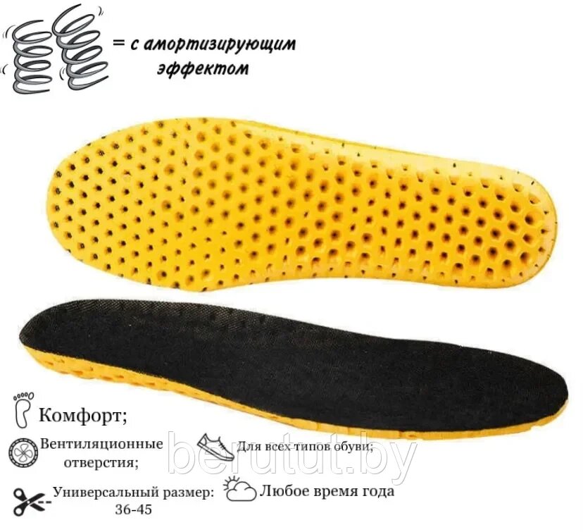 Стельки с пружинящим эффектом, стельки амортизирующие для спорта и ходьбы, универсальный размер 36-44