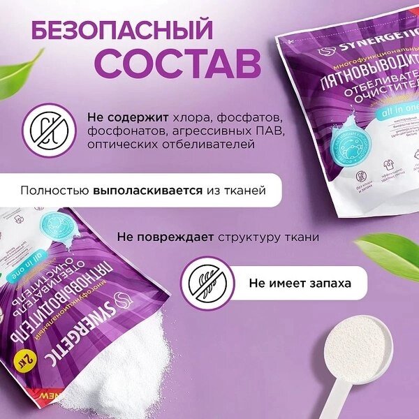 Пятновыводитель-отбеливатель кислородный Synergetic Кислородный Многофункциональный для тканей и поверхностей