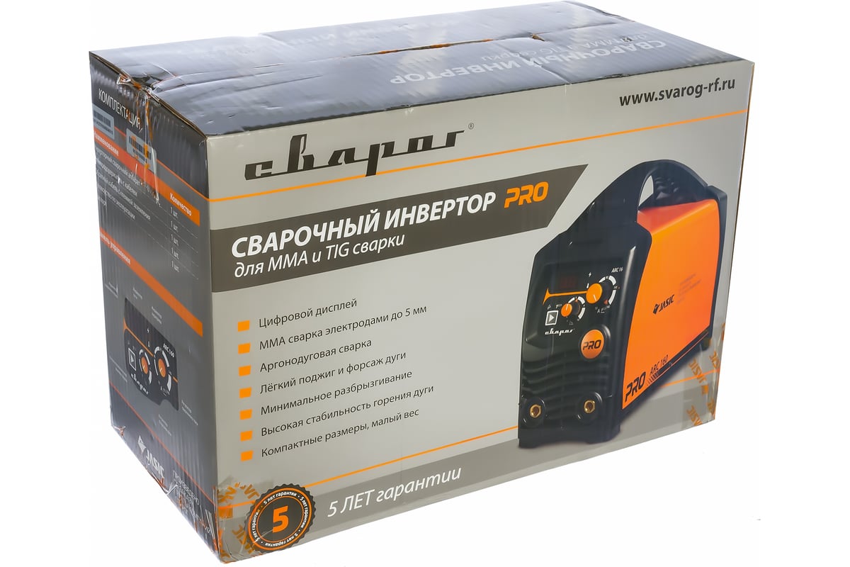 Сварочный инвертор Сварог ARC 200 PRO Z209S 00000090920 - современный аппарат для ручной дуговой сварки покрытыми электродами и аргонодуговой сварки. Основными преимуществами данной модели являются стабильность сварочной дуги, точная настройка тока в зависимости от металла и толщины заготовок, высокий КПД, отличное качество сварного шва и компактный корпус. Инвертор идеально подходит для эксплуатации в частных ремонтных мастерских и на небольших производствах. Оборудование питается от бытовой однофазной сети с колебаниями напряжения в диапазоне от -15% до +15%.