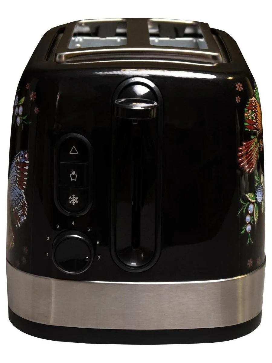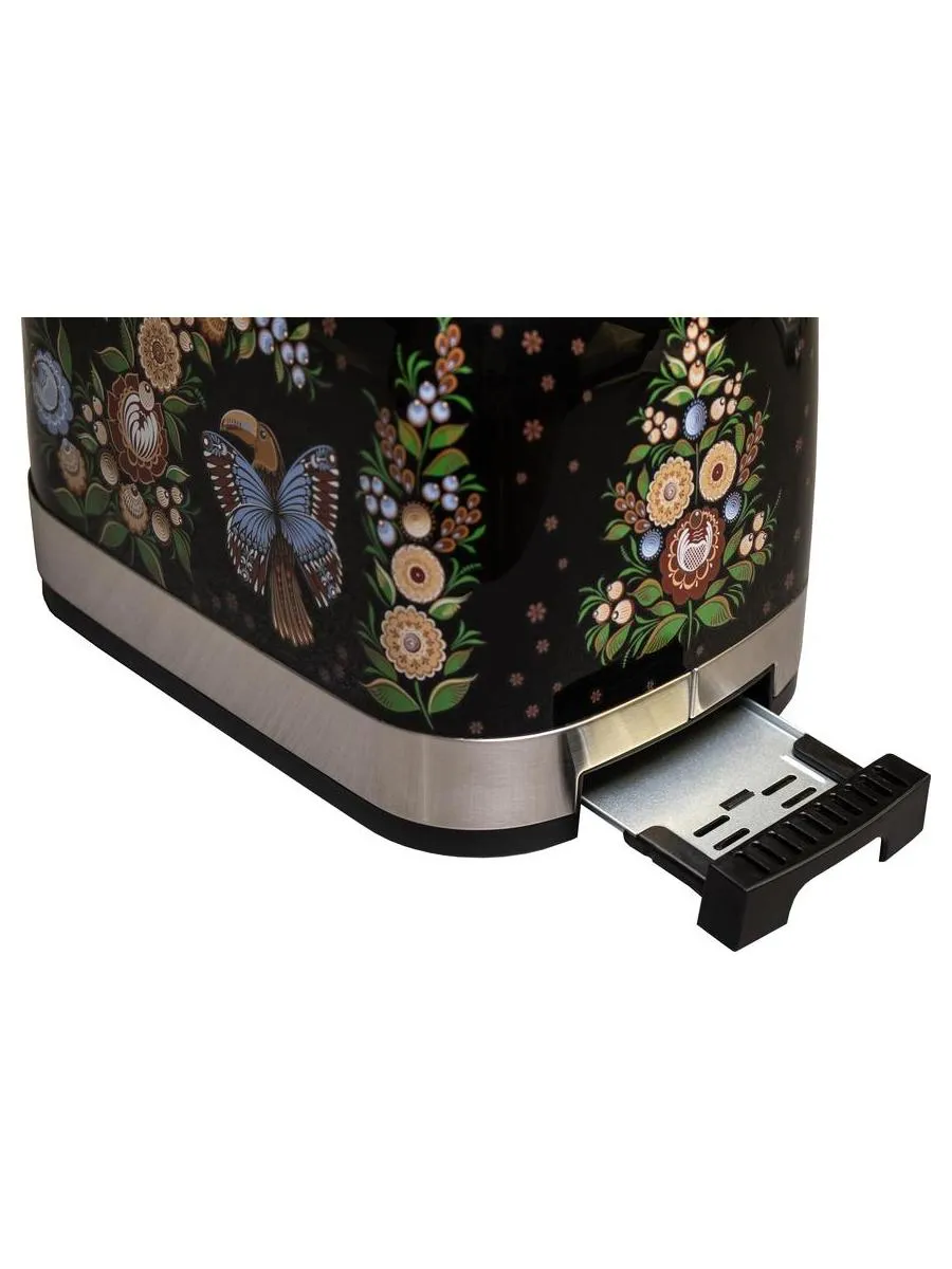 Тостер GARLYN TR-500 относится к уникальной кухонной коллекции Flower Grace. Ее объединяет изысканный орнамент: серо-оранжевые цветы и птицы, выполненные по технологии холодной деколи в 3 этапа, не только привлекают внимание, но и устойчивы к истиранию и выцветанию с течением времени.