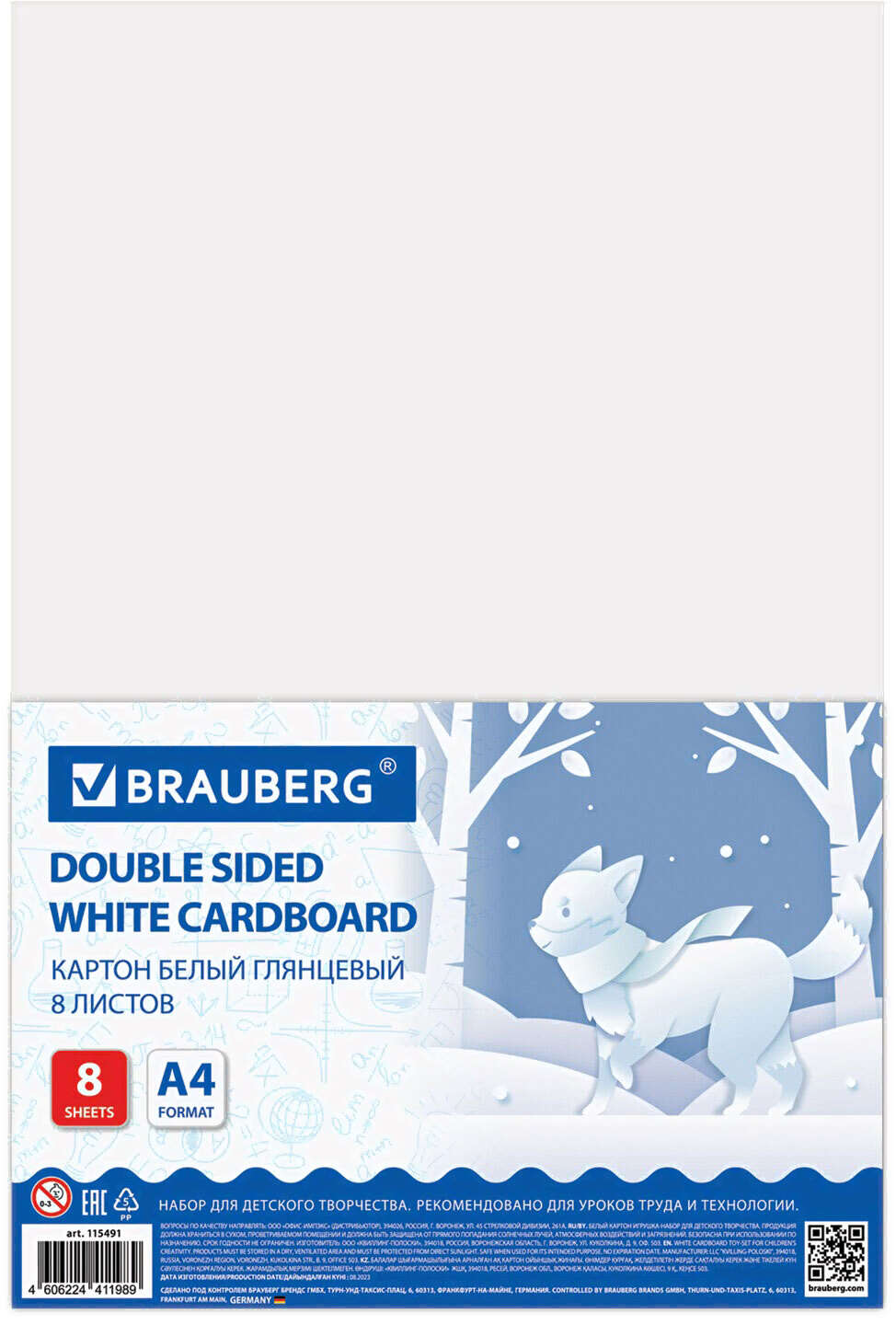 Набор белого картона Brauberg Мелованный / 115491 (8л)