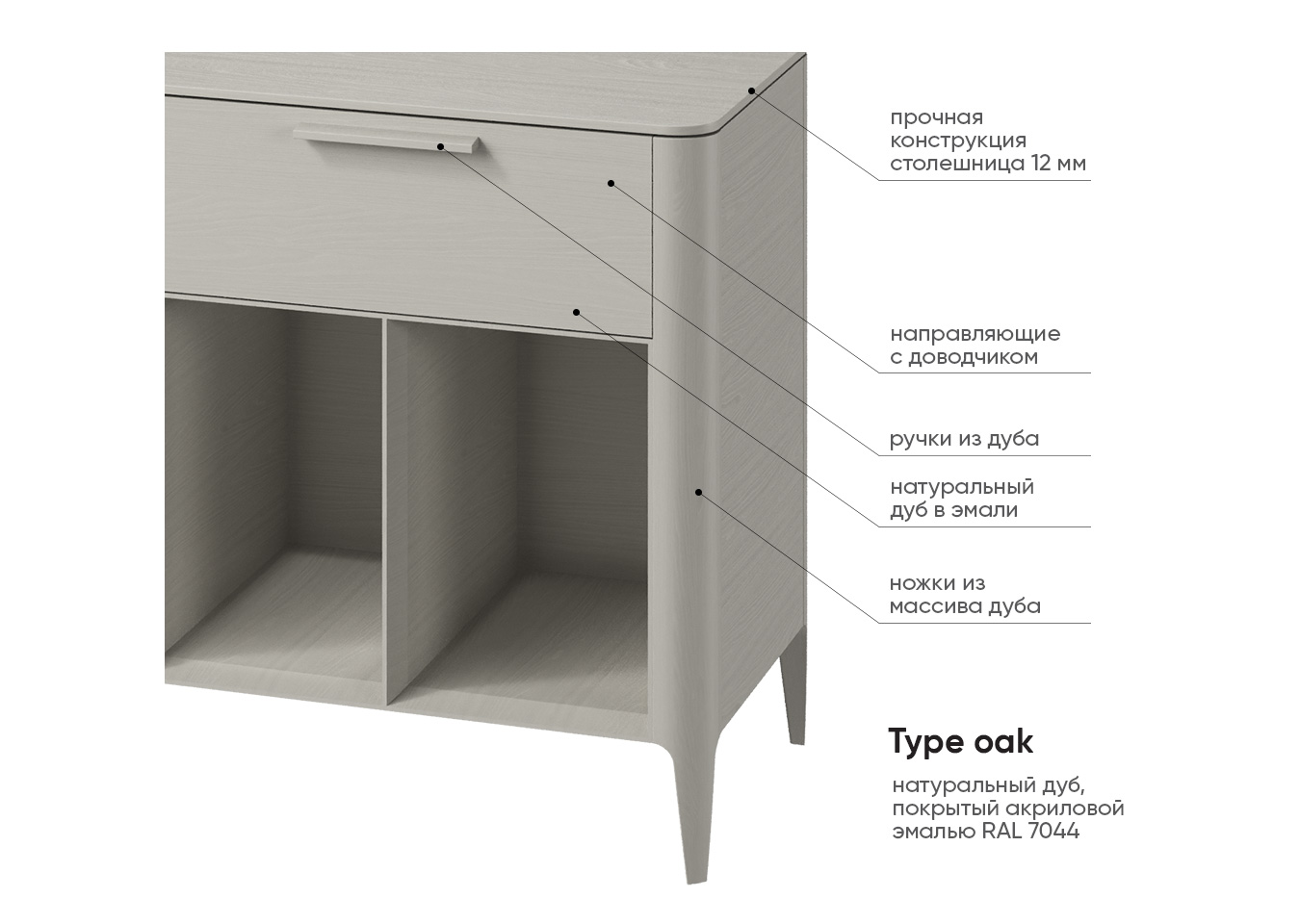 При производстве используется шпон натурального дуба, покрытие эмаль RAL 7044