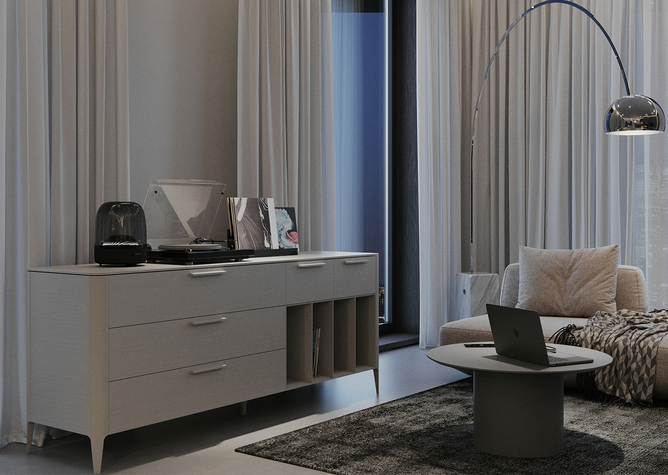 Тумба Type oak 5 ящиков 4 полки ширина 200 см (серо-бежевый)