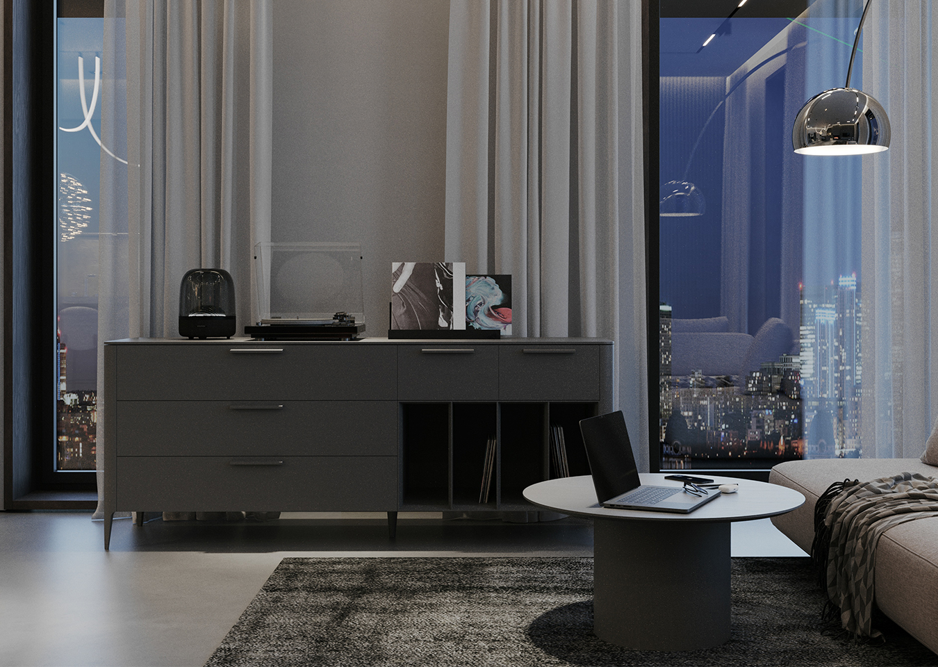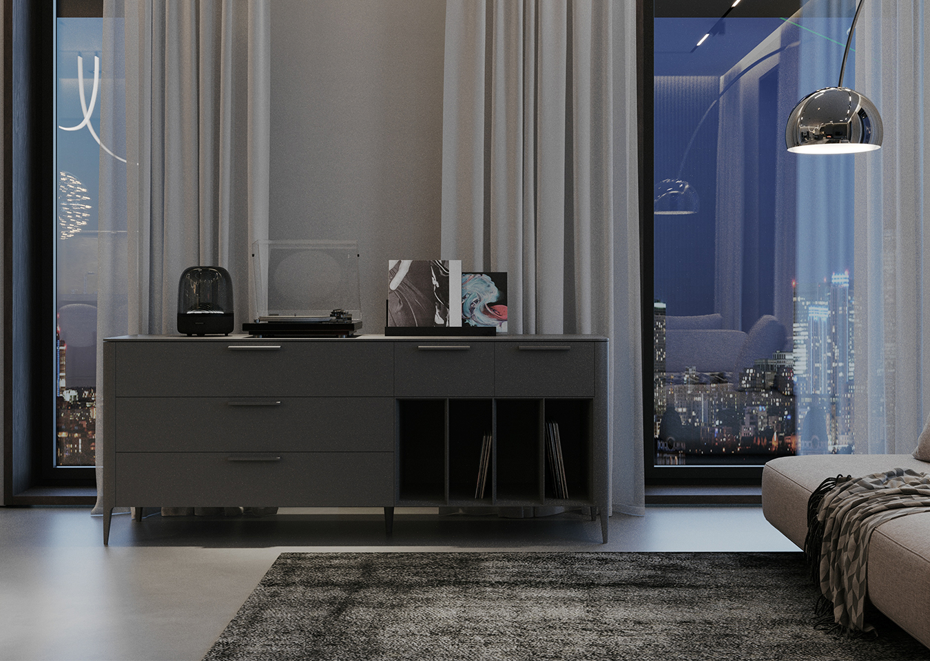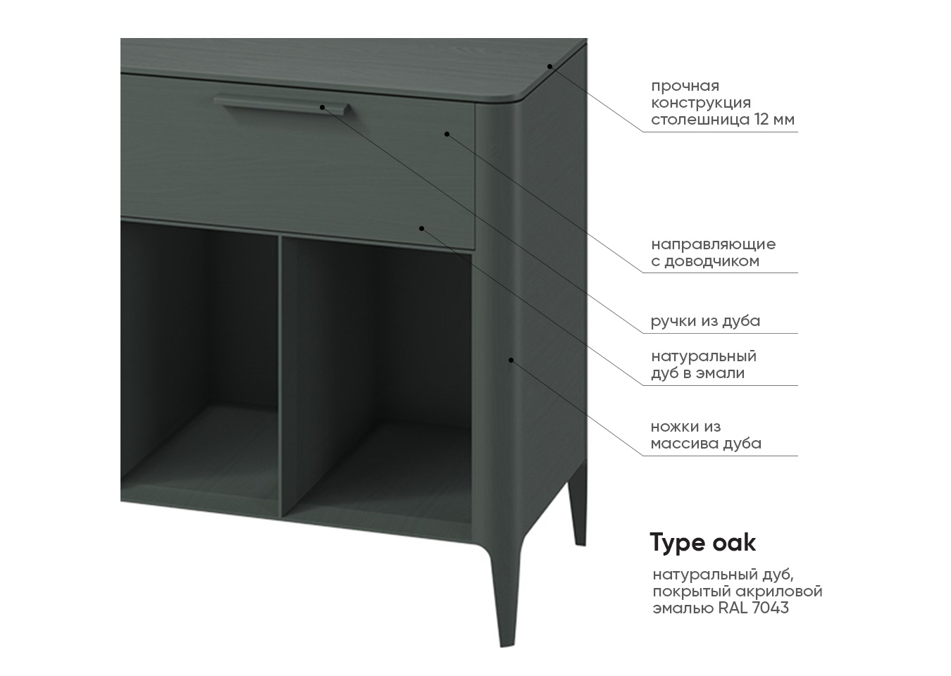 Тумба Type oak 5 ящиков 4 полки ширина 200 см (темно-серый)