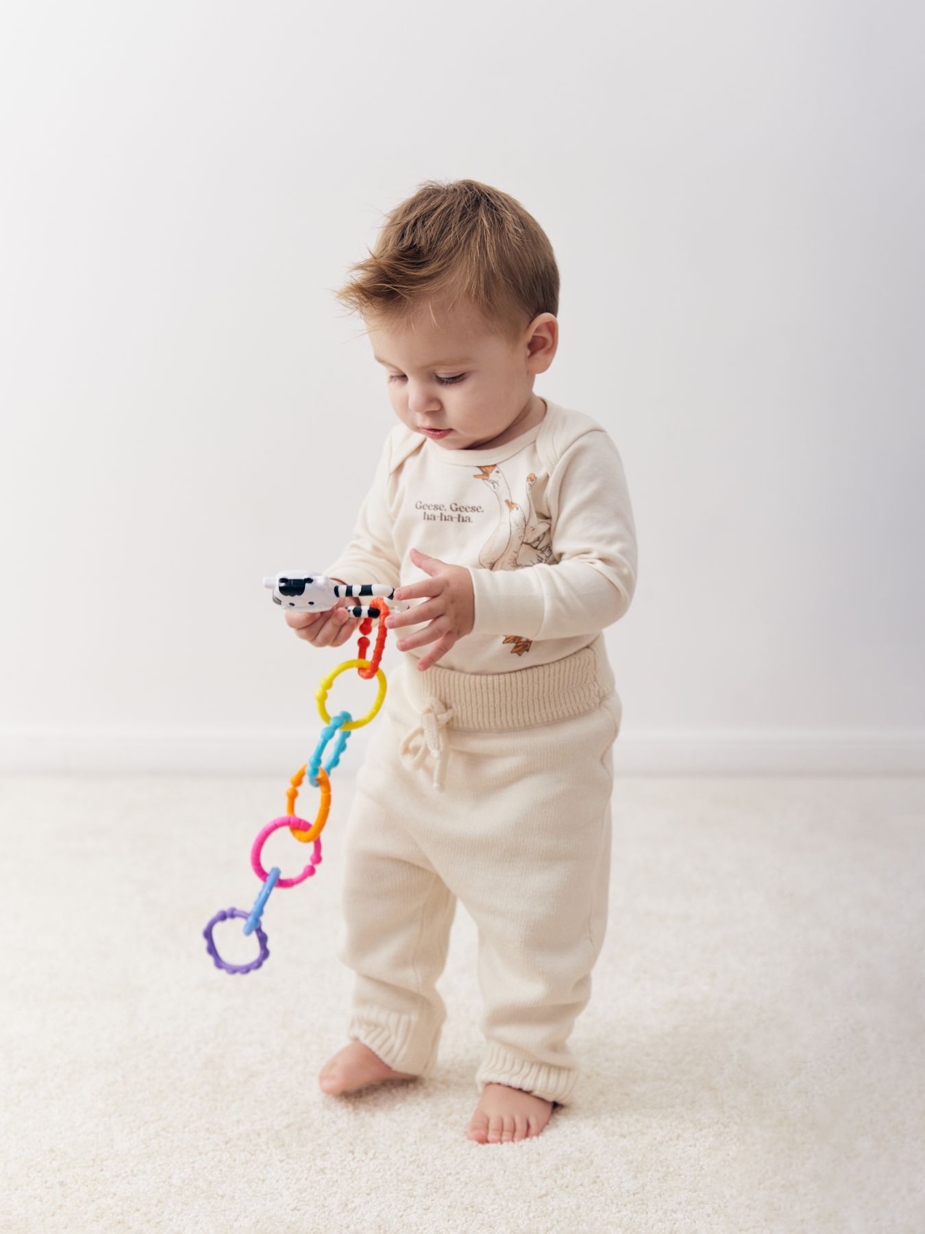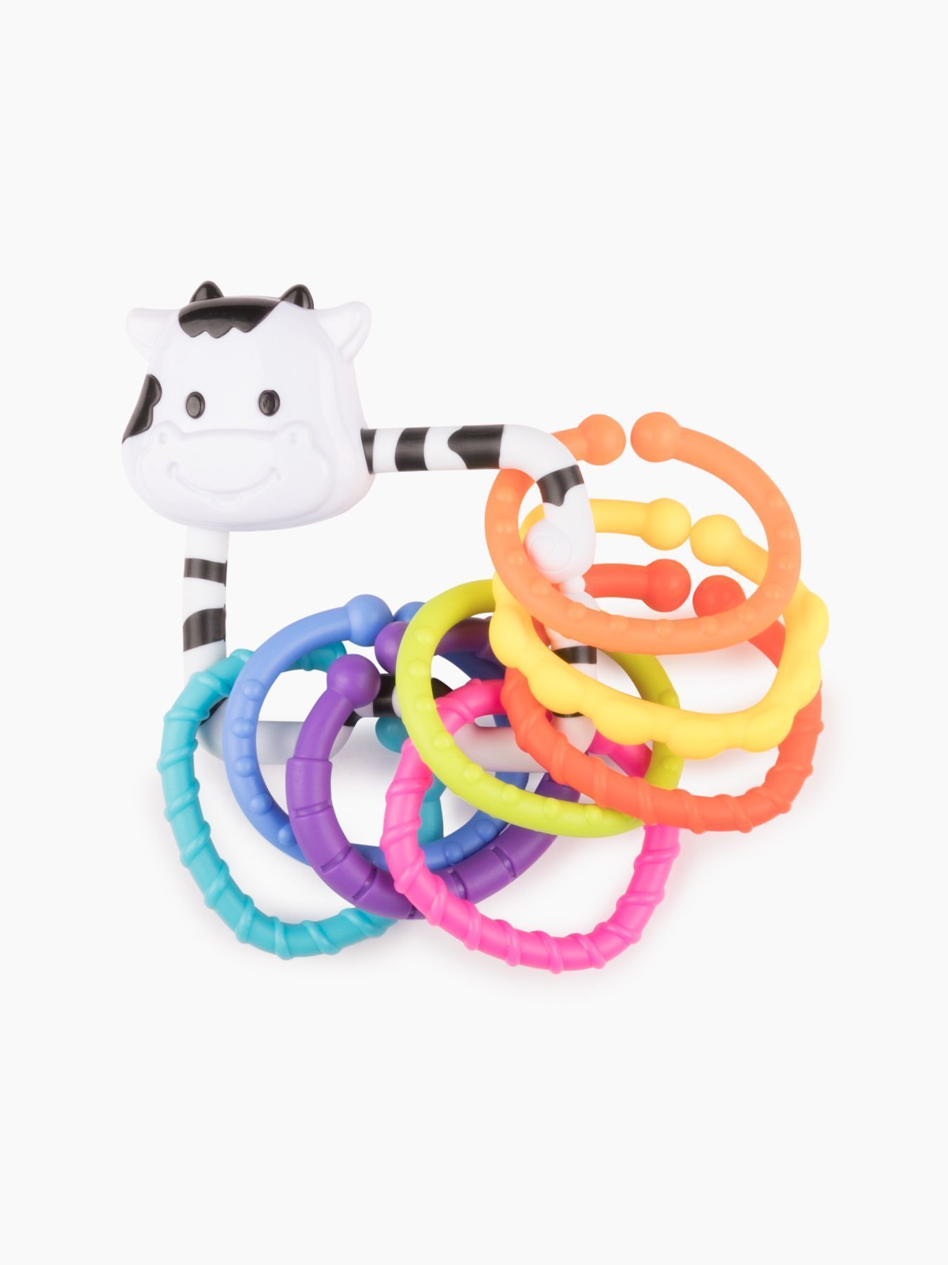 Погремушка MOO-RING идеальна для того, чтобы постоянно радовать любопытного кроху. Форма погремушки позволит удобно её держать, а небольшой размер поспособствует длительной игре и концентрации детского внимания.