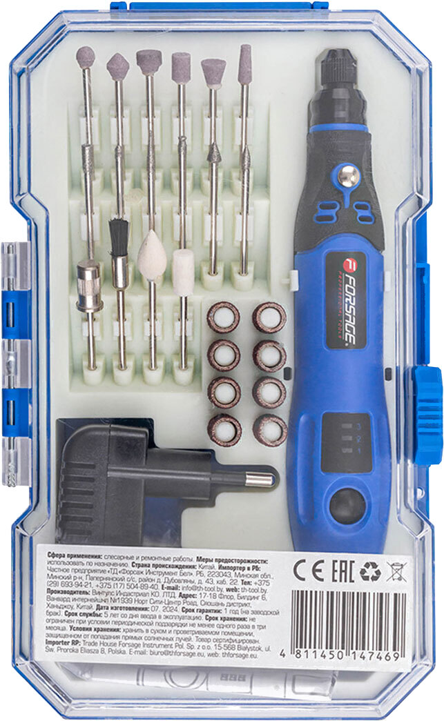 - Шлифовальные принадлежности шлифовальный камень (6 шт.), шлифлента (6 шт.)