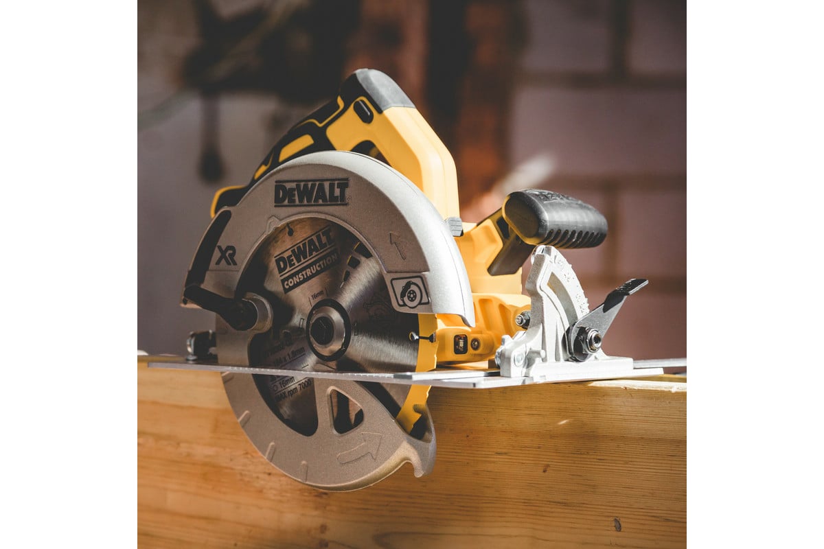 Дисковая пила DEWALT XR DCS570N подходит для поперечного или продольного распила древесины, фанеры, ДСП, МДФ и прочих композитов, пластика, цветных металлов. В качестве источника питания используется литий-ионная батарея напряжением 18 В.