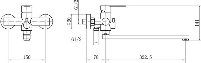- Длина (вылет) излива 322.5 — 322.5 мм