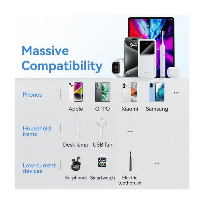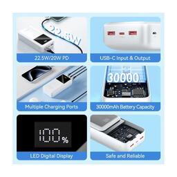• Модель 30000mAh 22.5W 3A, PD, QC/3.0, LED Display, White