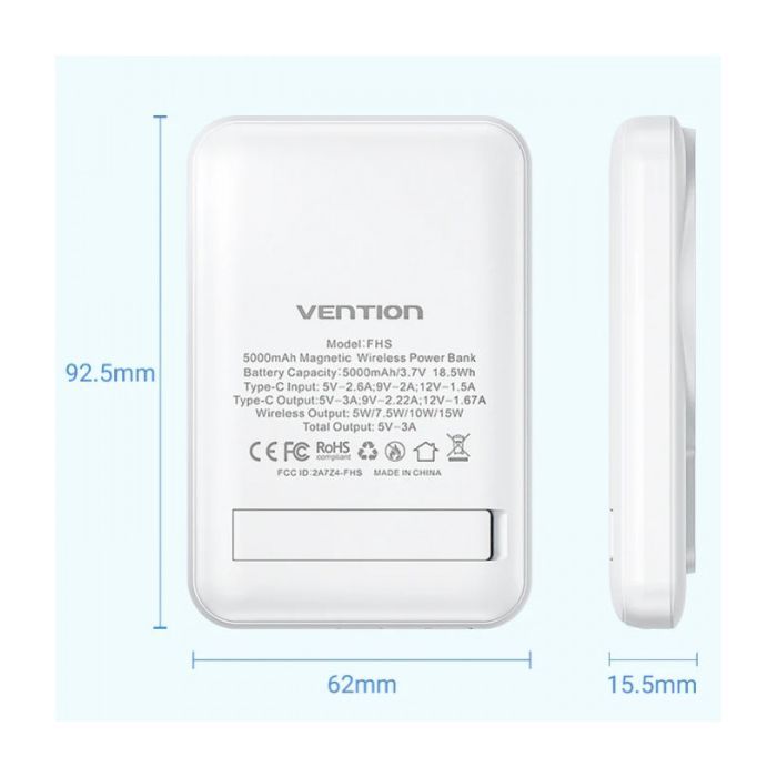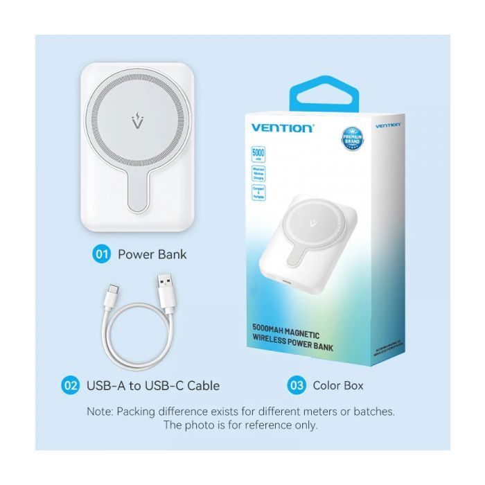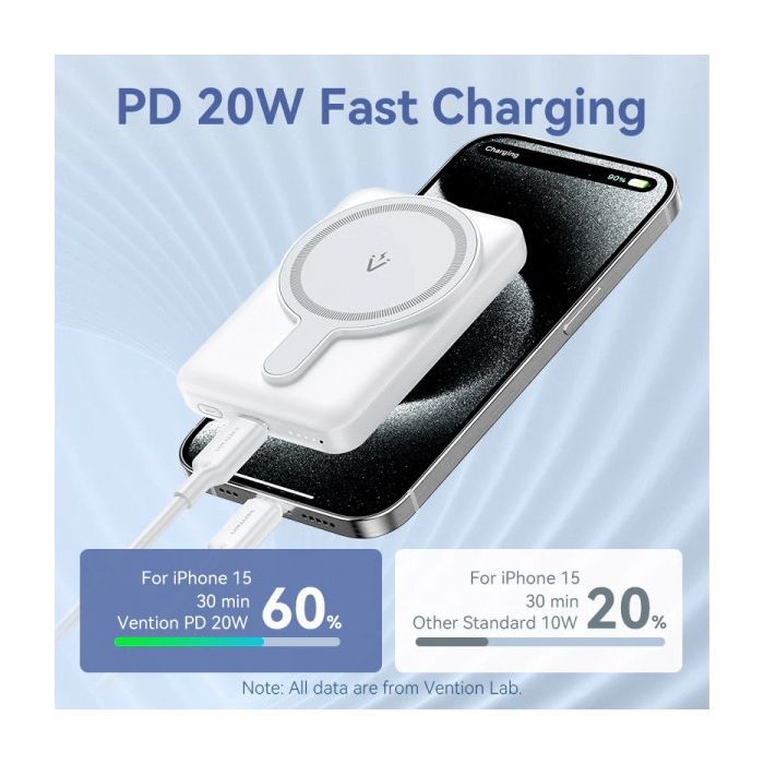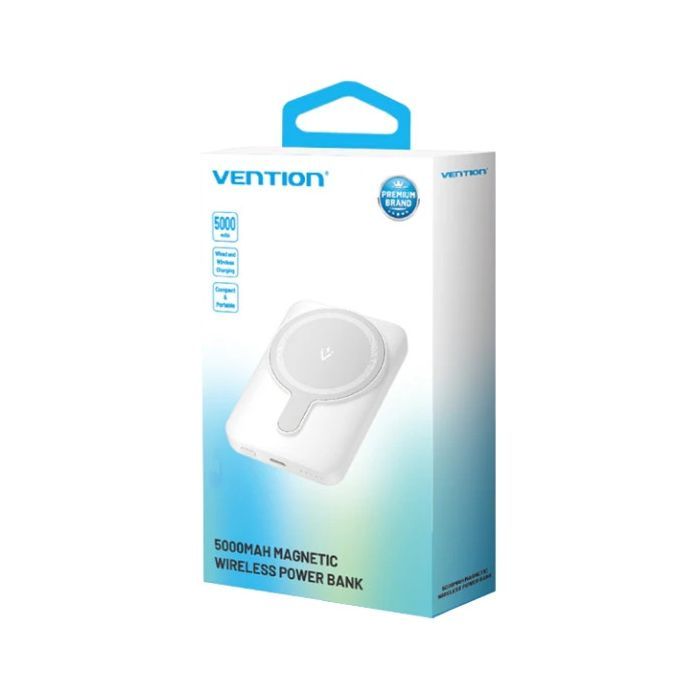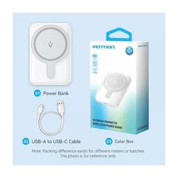 Батарея універсальна Vention Magnetic Wireless 5000mAh 20W 3A, PD USB-C, Light Indicator, White (FHSW0)