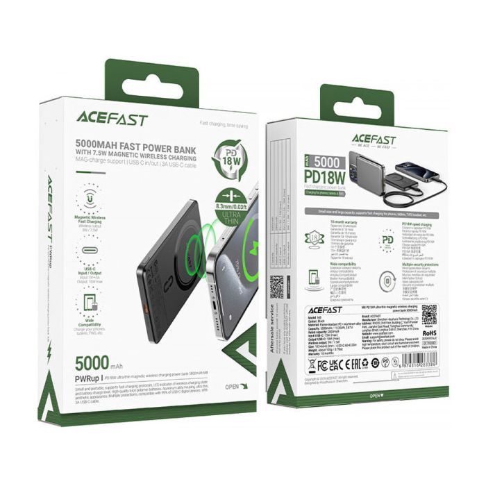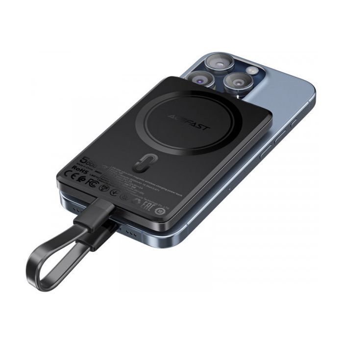 Батарея універсальна Acefast Magnetic Wireless 5000mAh 18W PD, QC/3.0, QI 7.5W, ультра тонкий, M8 Bllack (6974316283386)