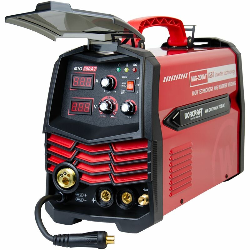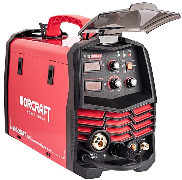 Worcraft MIG-200AT - сварочный полуавтомат, предназначенный для соединения металлических деталей в различных режимах дуговой сварки. Модель ориентирована на бытовой и полупрофессиональный сегмент, позволяя выполнять широкий перечень задач при ремонте, строительстве и изготовлении конструкций из стали, цветных сплавов и других металлов. Устройство применимо на открытых площадках и в помещениях, где требуется универсальность и стабильность сварочного процесса.
