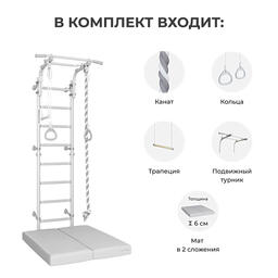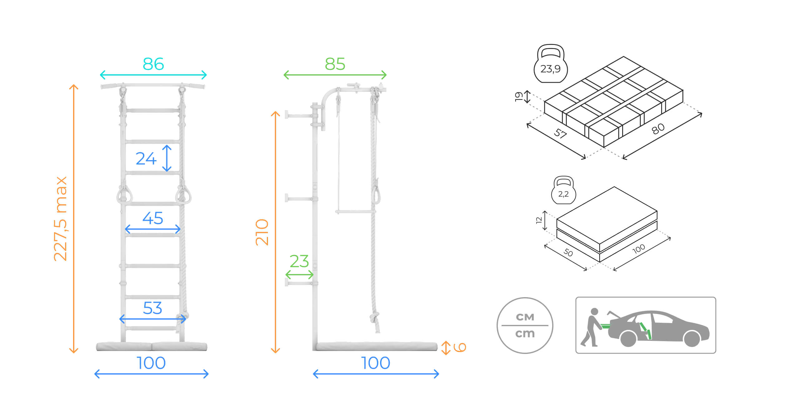 • Ширина 860 мм (вынос турника), 1000 мм (мат)