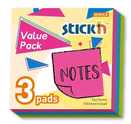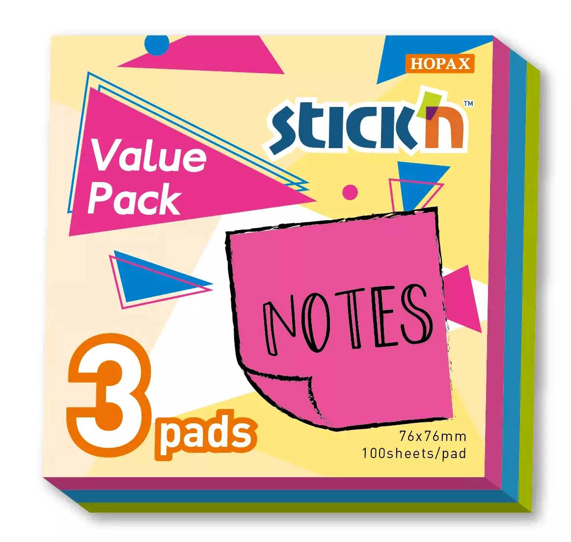 Блок самоклеящийся Stick`n 27095 неон 3цв.в упаковке 100 листов (упак.:3шт)