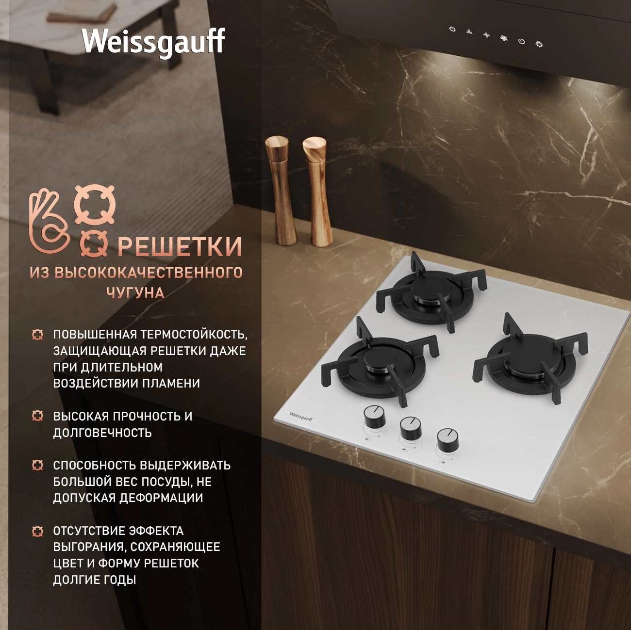 Газовая варочная поверхность Weissgauff HG 453 WGV белый
