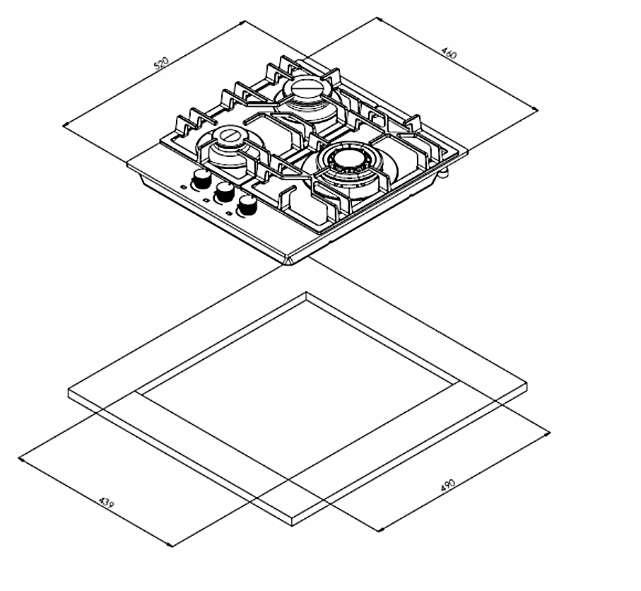 • Суммарная мощность газовых конфорок 5.25 кВт