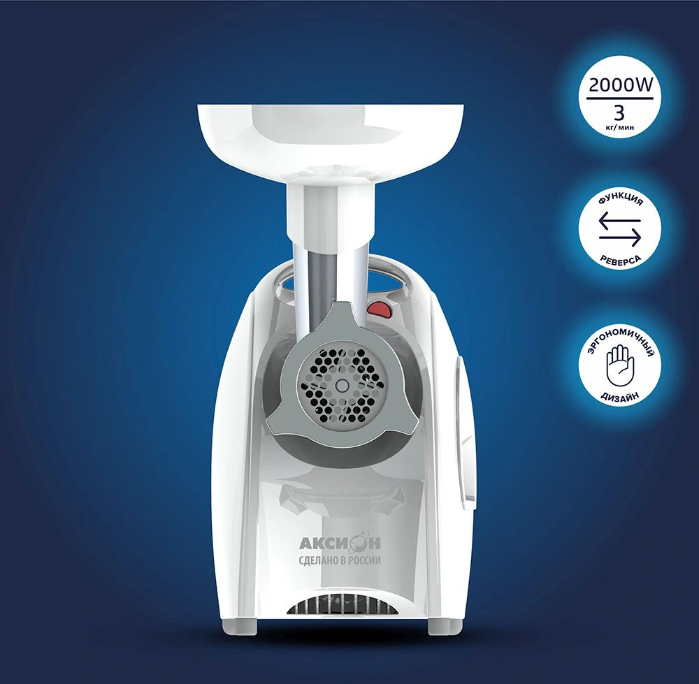ОписаниеЭлектрические мясорубки М641 «Аксион» мощностью 2000 Вт позволят вам изготовить до 3 кг фарша в минуту. Новая конструкция шнековой камеры, решетки увеличенной толщины и нож из нержавеющей стали гарантируют высокое качество переработки продуктов даже низкого сорта.