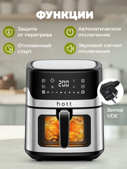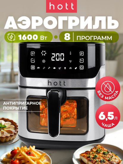 ❗️Текст описания составлен при помощи искусственного интеллекта.✅ Аэрогриль Hott ZHAF-650AP-6.5-S — это идеальное решение для тех, кто хочет готовить быстро и вкусно. С мощностью 1600 Вт и диапазоном регулировки температур от 80 до 200 °C, вы сможете легко подбирать нужный режим для различных блюд. ✅ Сенсорное управление делает процесс приготовления интуитивно понятным и удобным. Вы сможете легко выбрать одну из 8 автоматических программ, что значительно упростит вашу кулинарную рутину. ✅ Объем колбы в 6.5 литра позволяет готовить большие порции, что идеально подходит для семейных ужинов или встреч с друзьями. Благодаря функции отложенного старта, вы сможете заранее подготовить блюда и не беспокоиться о времени.⚠️ Не забывайте, что аэрогриль также оснащен таймером на 1 час и функцией автоотключения, что обеспечивает безопасность во время готовки. ✅ Нагревательный элемент из металла (ТЭН) гарантирует равномерное прогревание и хрустящую корочку, что делает ваши блюда еще более аппетитными. ✅ С Hott ZHAF-650AP-6.5-S вы сможете наслаждаться здоровой и вкусной пищей без лишнего масла, что делает его отличным выбором для тех, кто следит за своим питанием. ✅ Этот аэрогриль станет незаменимым помощником на вашей кухне, позволяя вам экспериментировать с различными рецептами и готовить любимые блюда с минимальными усилиями.❗️Текст описания составлен при помощи искусственного интеллекта.✅ Аэрогриль Hott ZHAF-650AP-6.5-S — это идеальное решение для тех, кто хочет готовить быстро и вкусно. С мощностью 1600 Вт и диапазоном регулировки температур от 80 до 200 °C, вы сможете легко подбирать нужный режим для различных блюд. ✅ Сенсорное управление делает процесс приготовления интуитивно понятным и удобным. Вы сможете легко выбрать одну из 8 автоматических программ, что значительно упростит вашу кулинарную рутину. ✅ Объем колбы в 6.5 литра позволяет готовить большие порции, что идеально подходит для семейных ужинов или встреч с друзьями. Благодаря функции отложенного старта, вы сможете заранее подготовить блюда и не беспокоиться о времени.⚠️ Не забывайте, что аэрогриль также оснащен таймером на 1 час и функцией автоотключения, что обеспечивает безопасность во время готовки. ✅ Нагревательный элемент из металла (ТЭН) гарантирует равномерное прогревание и хрустящую корочку, что делает ваши блюда еще более аппетитными. ✅ С Hott ZHAF-650AP-6.5-S вы сможете наслаждаться здоровой и вкусной пищей без лишнего масла, что делает его отличным выбором для тех, кто следит за своим питанием. ✅ Этот аэрогриль станет незаменимым помощником на вашей кухне, позволяя вам экспериментировать с различными рецептами и готовить любимые блюда с минимальными усилиями.