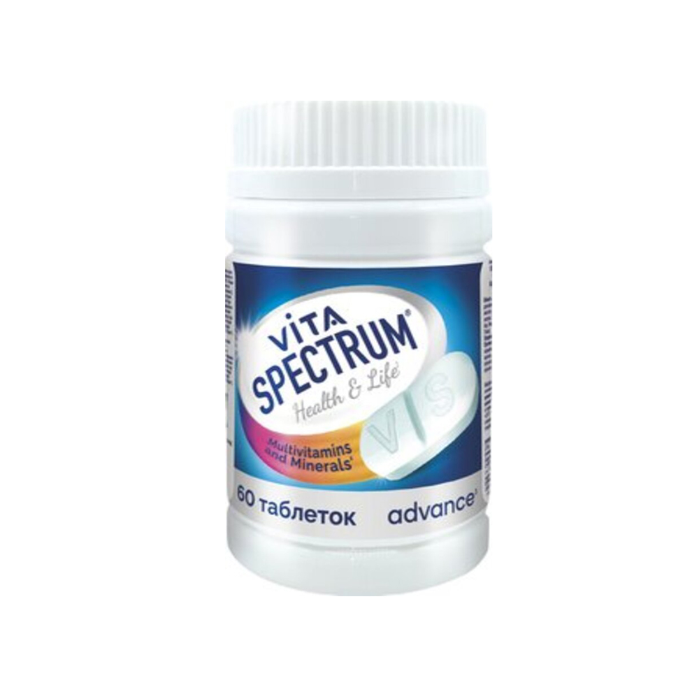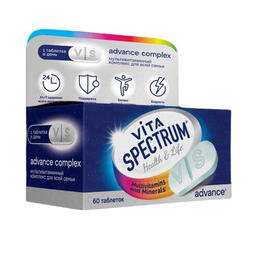 Витаспектрум Адванс Мультивитаминный - универсальный витаминно-минеральный комплекс премиум-класса, разработанный для всех членов семьи старше 14 лет. Содержит 15 витаминов и 11 минералов в улучшенной формуле с повышенной дозировкой ключевых нутриентов. <br>