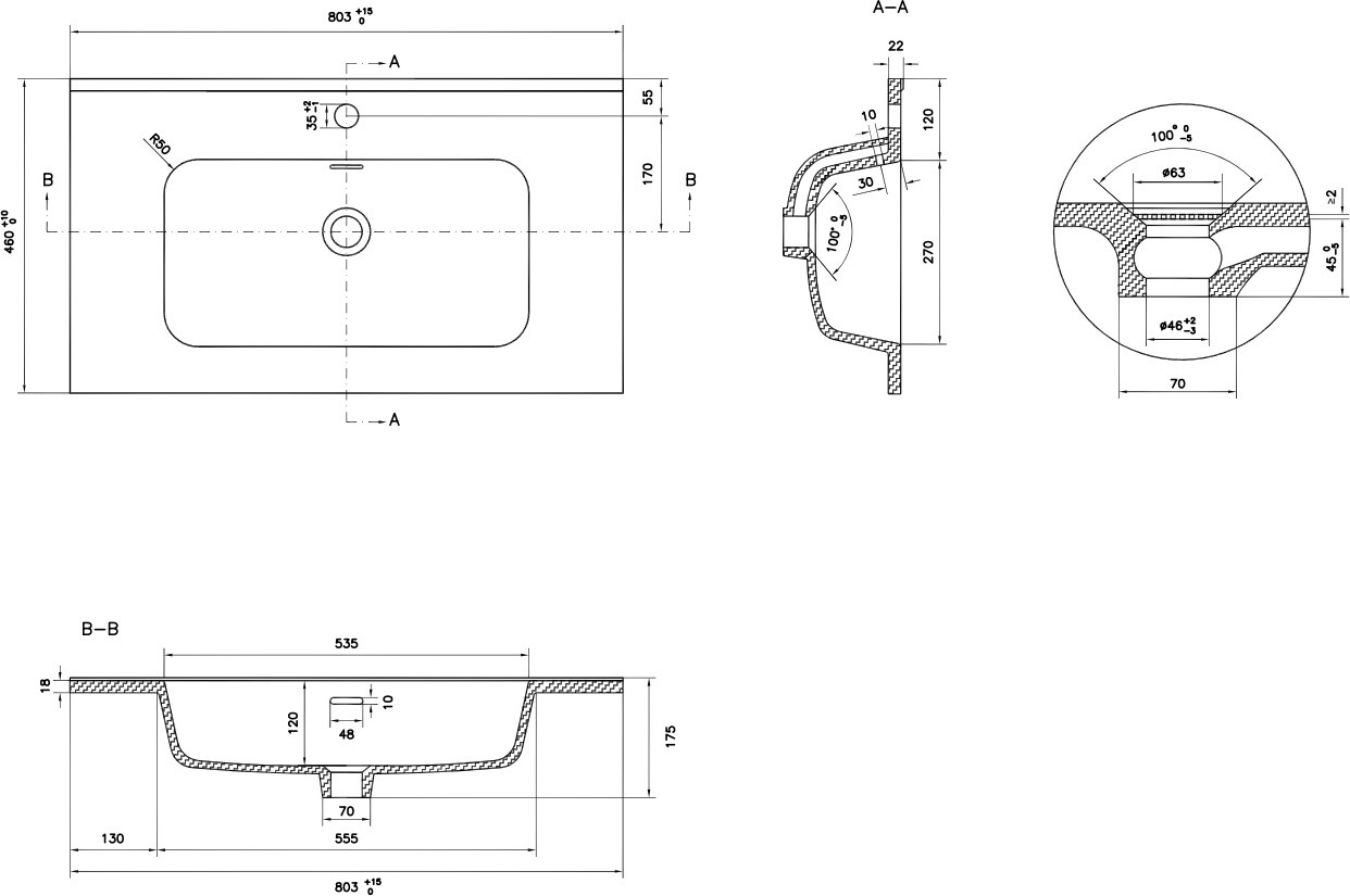 • Диаметр отверстия под смеситель 35 мм