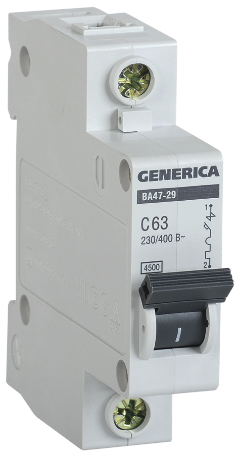 Автоматический выключатель ВА47-29 1Р 63А 4,5кА х-ка С GENERICA