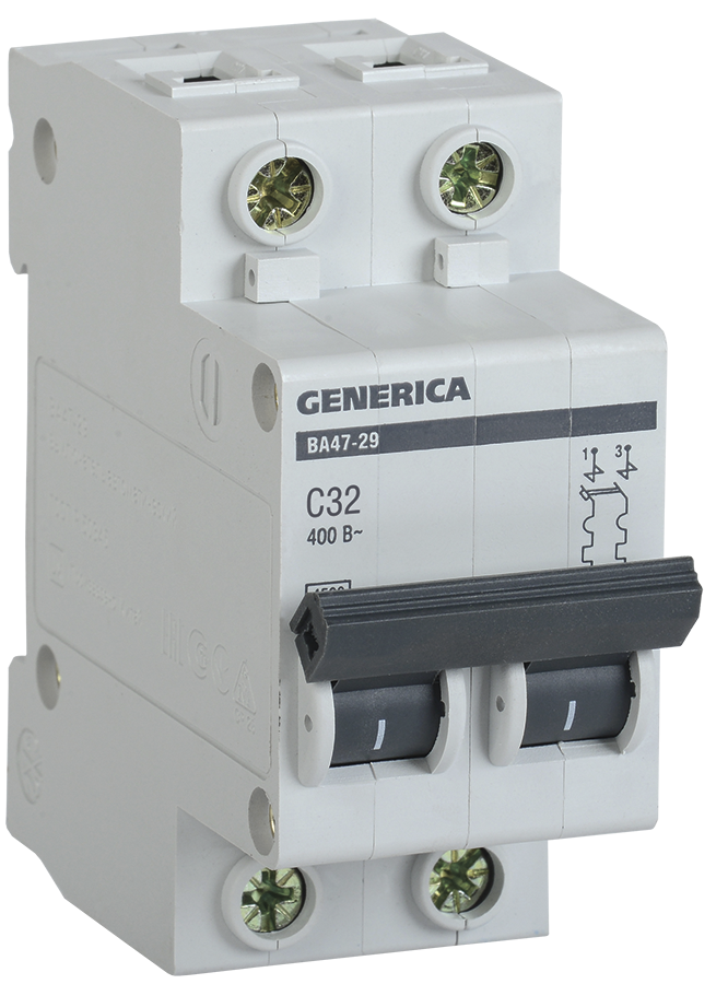 Автоматический выключатель ВА47-29 2Р 32А 4,5кА х-ка С GENERICA