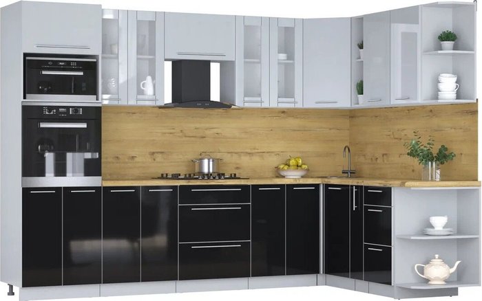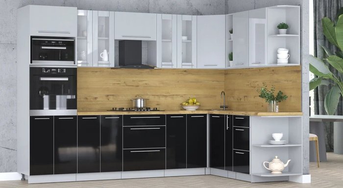 - Оттенок нижних фасадов черный глянец