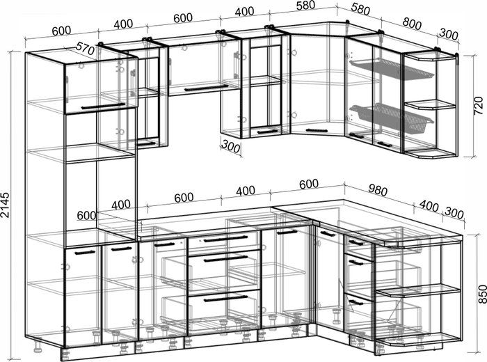 • Конструкция кухни угловая