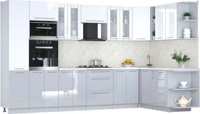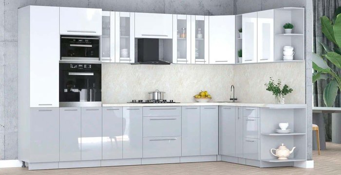 - Оттенок верхних фасадов белый глянец