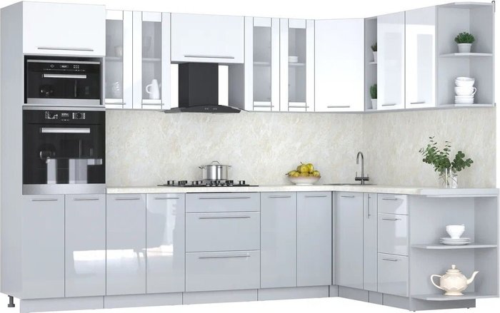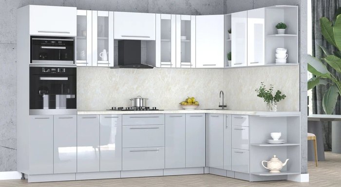 - Оттенок верхних фасадов белый глянец